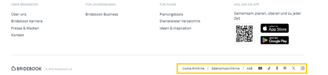 Wo finde ich das Kleingedruckte? Scrolle auf deiner Startseite einfach ganz nach unten und klick dort auf Datenschutzrichtlinie oder AGB.