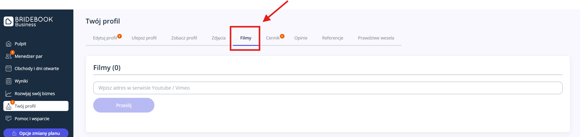 - Zaloguj się do swojego konta Bridebook Business