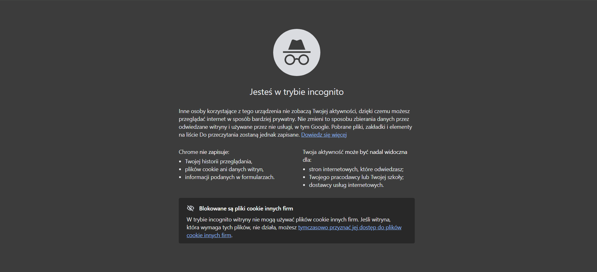 Użyj Trybu Incognito, aby usunąć wszelkie zalegające pliki cookie lub pamięć podręczną, które mogą zakłócać przeglądanie.