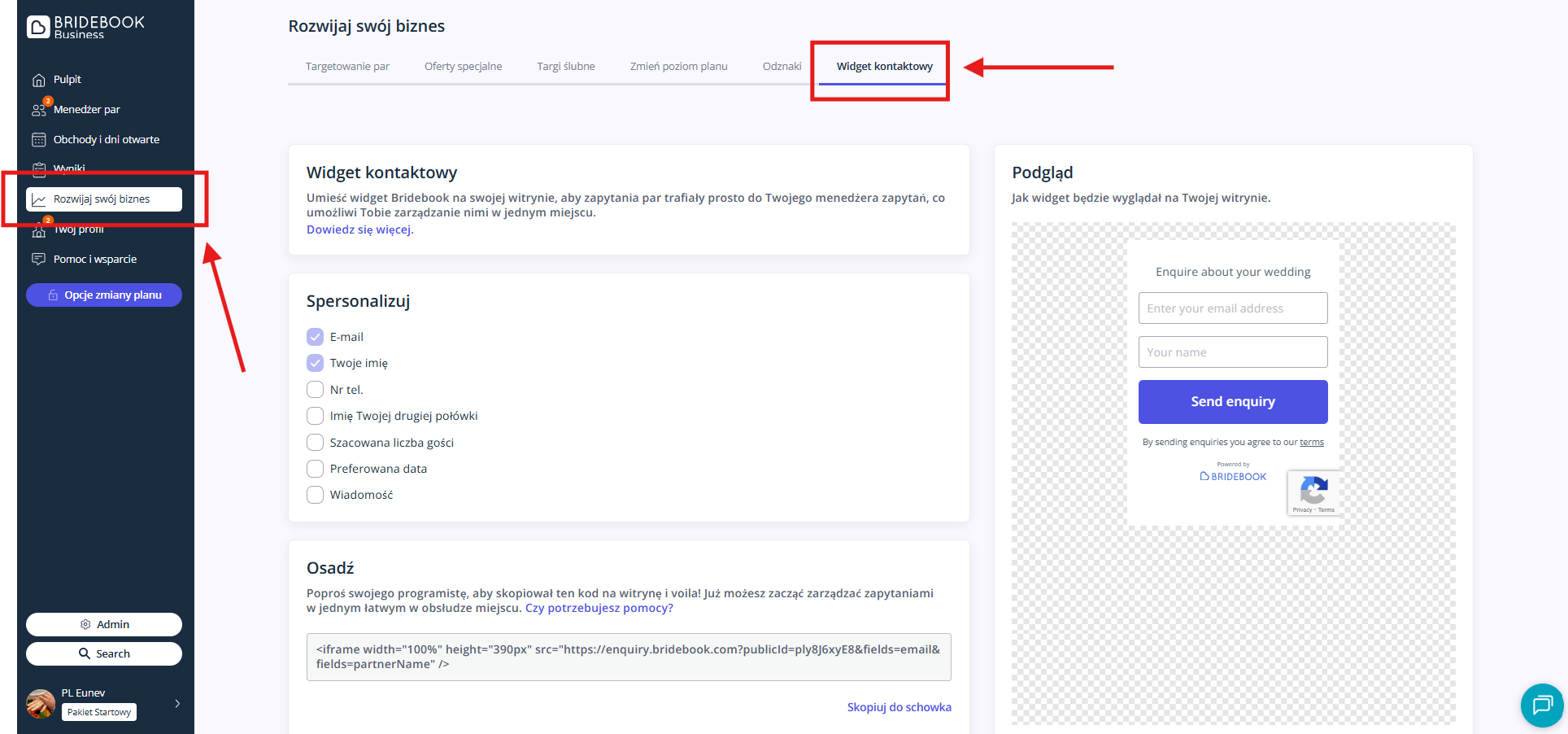 Po prostu osadź swój Widget Zapytań Bridebook na swojej stronie internetowej. Nasz widget zapewnia parom bezpośrednią ścieżkę do Twojego Menedżera Par – utrzymując wszystko schludnie w jednym miejscu.