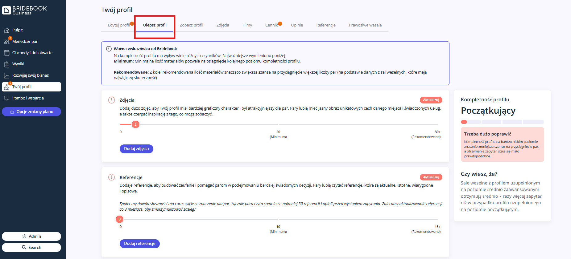 Popraw swój profil + Zwiększ wynik profilu