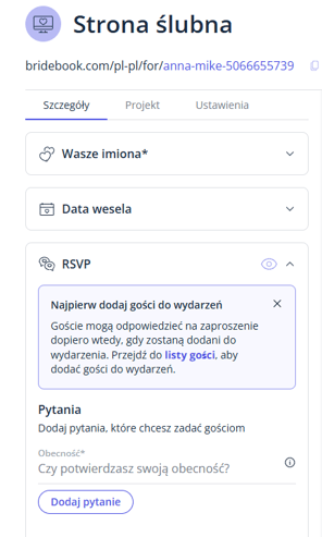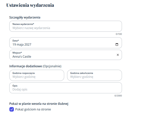 - Widoczność wydarzenia dla gości na Twojej Stronie ślubnej