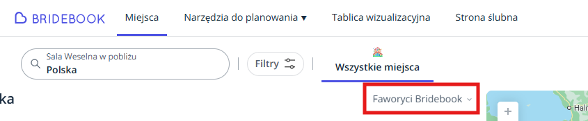 Filtry: Jeśli szukasz miejsc poza naszymi głównymi rynkami, czyli Wielką Brytanią, Irlandią, Niemcami lub Francją, pamiętaj, żeby wybrać filtr „Polecane przez Bridebook”. Dzięki temu znajdziesz miejsca i dostawców, którzy aktywnie współpracują z parami, co gwarantuje, że otrzymasz nasze najlepsze rekomendacje.