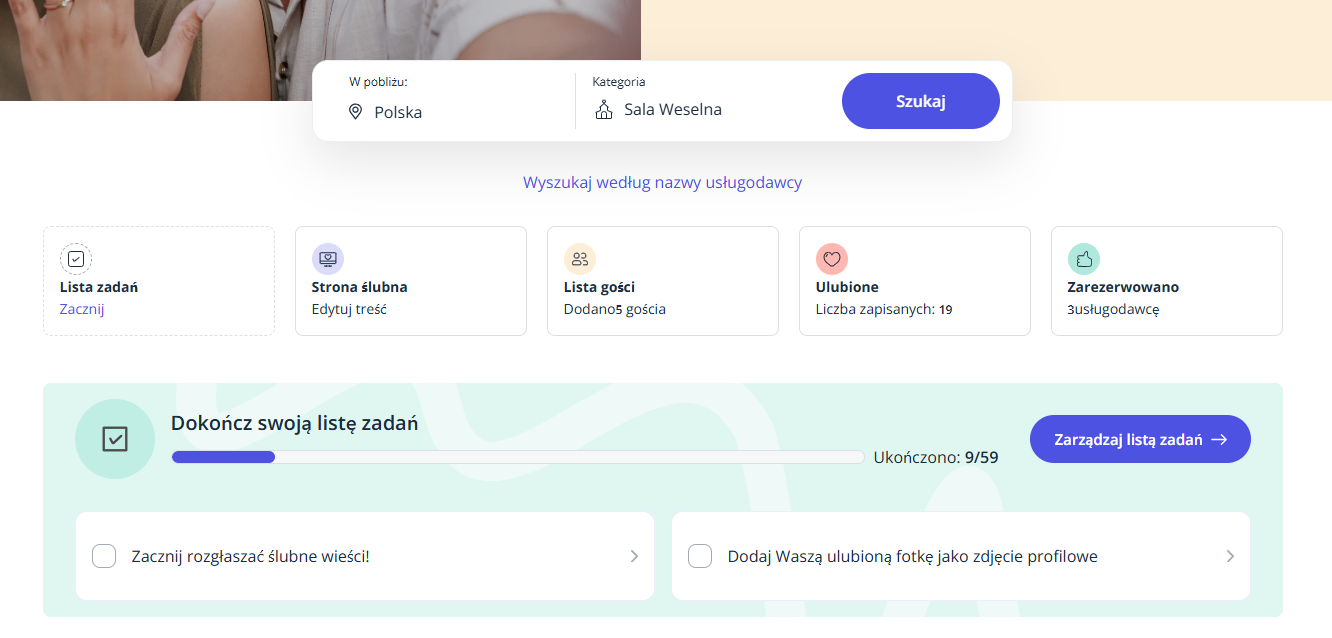 „Dzisiejsze zadanie” to Twój podręczny przewodnik po codziennym planowaniu ślubu. Poprowadzi Cię przez wszystkie kluczowe kroki, które musisz podjąć, aby mieć pewność, że nie przegapisz ani chwili w tworzeniu wymarzonej uroczystości.